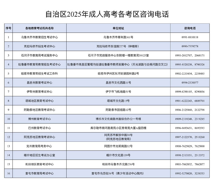 自治区教育考试院特别提醒考生:后续即将公布的自治区2025年成人高考各层次、科类最低投档控制分数线及考生“正式志愿”填报、录取等相关通知,请考生密切关注“新疆招生网”(www.xjzk.gov.cn)和“新疆招生”(xjzs140304)官方微信公众号发布的相关信息。请考生妥善保管本人登录系统密码,切勿轻易将密码转告他人,勿委托他人或机构代填“正式志愿”,避免因密码泄露造成不良后果。