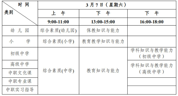 2026年上半年中小学教师资格考试(笔试)日程安排