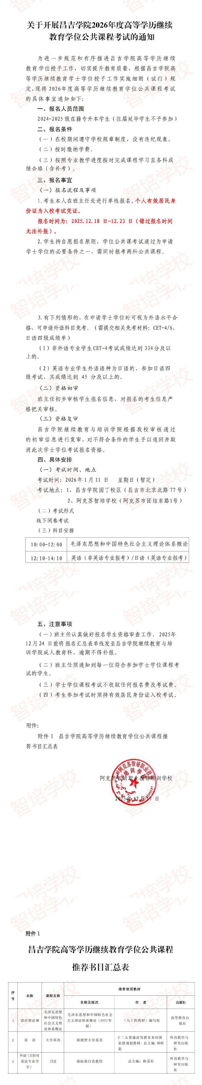 学位考试-关于开展昌吉学院2026年度高等学历继续教育学位公共课程考试的通知